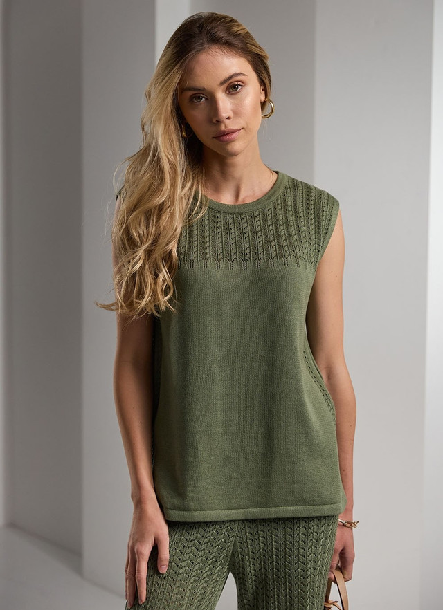 Трендовий ажурний топ із натуральної пряжі включенням бавовни та віскози.
