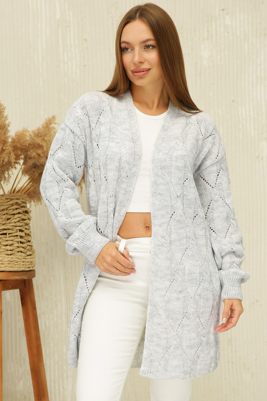 Жіночий в'язаний кардиган без застібки світло-сірого кольору. Модель 227. Розмір ун 46-54
