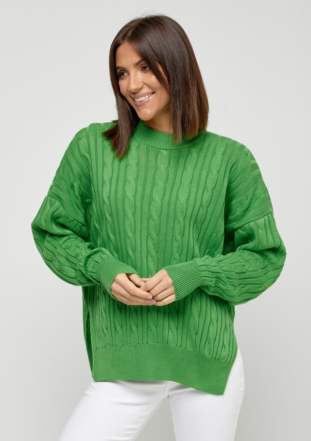 Светр жіночий в'язаний оверсайз із бічними розрізами, колір зелений. Модель 247