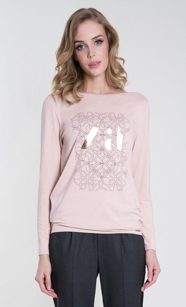 Блуза з віскози з довгим рукавом, U-подібним вирізом горловини, спереду прикрашена абстрактним принтом і фірмовим логотипом Zaps